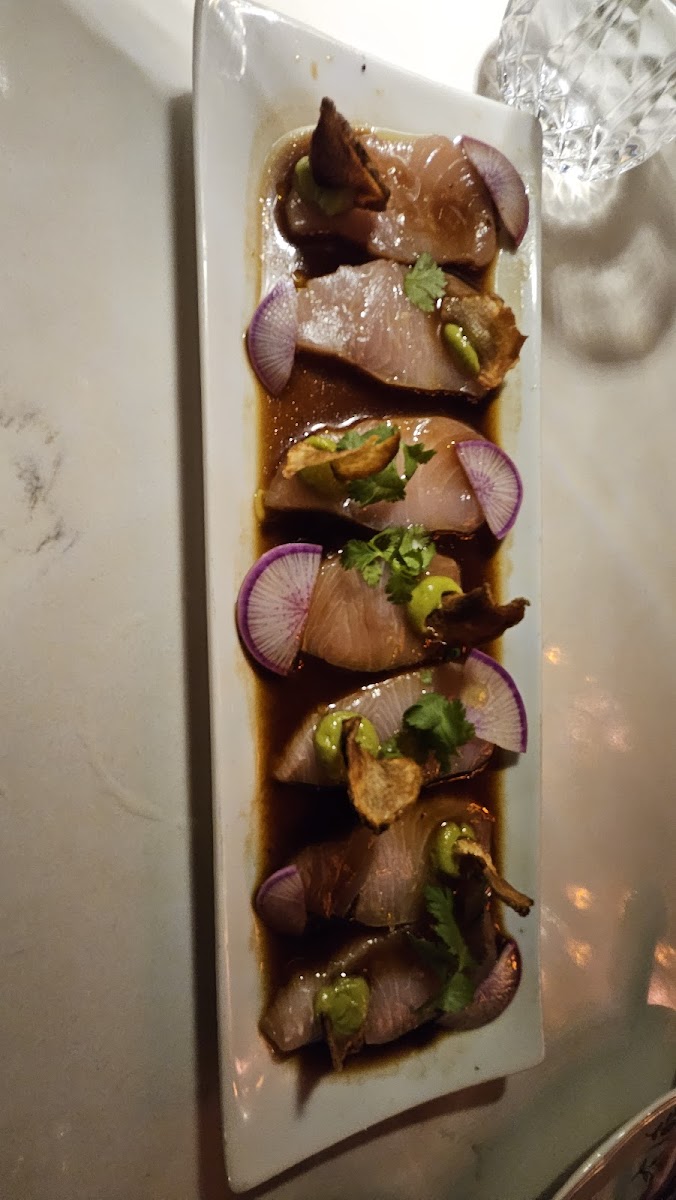 I genuinely loved my experience here at Arden to celebrate my anniversary! The entire space is covered in artificial, but well maintained flowers, plants, and chandeliers with warm lamps on the side that emit a light pink light. There are separate dining areas that provide a different experience from a cafe style in the front, to a conservatory feel in the back with lots of hanging baskets, to the main dining room that screams elegance and of course the bar that opens up to the sky amidst more hanging flowers. We visited during the holidays, so they also had a Christmas tree set up that changed colors and the fireplaces were lit up, adding another magical element to the space at night. Personally I think we got the best seat in the house, which I recommend reserving ahead of time since it gets packed, inside the main dining room in the far back corner facing the bar and front of the house. You can see almost everything from there, but know that no matter where you sit, you’ll have a lovely view. Our server was also outstanding and gave us plenty of time to decide what we wanted without feeling rushed and pressured into anything. Note however that there is a 3% credit card fee, so unless you have a cash back or points system that matches or exceeds this charge, I recommend bringing cash. Food-wise it was a hit and miss situation, which is why I couldn’t give it a full 5 stars despite enjoying my visit. To start we ordered the Tuna Truffle Crudo, which was crusted and blackened around the edges of the slices, yet raw in the middle. It was quite spicy, contrasted with a small dollop of avocado cream and crispy fried onions, radish and microgreens. While the sweet yet acidic sauce underneath had the potential to unite the entire dish with a fresh, bright flavor, it didn’t stick to the fish because it was so watery. You couldn’t taste it and the spice ended up overpowering each bite as a result. If the sauce stuck to the fish more, perhaps by turning it into a thicker syrup consistency, then it would be more balanced. We also ordered the Shaved Brussels Sprouts, which unfortunately was not as appetizing of a salad as I was hoping for a few reasons. First, the vegetables were really dry, almost like they’d been cut ahead of time and left out until someone ordered. You could tell when you looked at the snap peas for example, which had that white hard edge from losing all its moisture. Also, raw brussel sprouts can be tough to work with, but if they scrunched them up with salt like cabbage or kale, they can release more of their juices and be easier on the palate both flavor and texture wise. Adding more vinaigrette to the plate would have done wonders on its own accord, especially because the dressing itself is delicious. I also really liked the added crunch of the crispy quinoa and think adding a pop of sweetness by adding dried cherries, cranberries, pomegranate or even bits of tangerine would have also elevated the dish. Now the Charred Octopus with Romesco, a favorite dish on the menu, was absolutely the best thing I ate all night and I would come back for it specifically. I loved how well the octopus was cooked, with a nice char on the outside, thinly sliced and not in the least bit chewy. The potatoes were firm enough to retain their shape, but soft enough to melt in your mouth alongside the butter and chives. The romesco itself was also outstanding, seasoned really well and was just the right amount for the entree. It was flavorful and had a perfect thicker texture for dipping that wasn’t too watery, nor too chunky. The Lobster Rigatoni was also very tasty, but it didn’t blow my mind. I liked that there were chunks of lobster in it as opposed to minced or ground meat, and the pasta was cooked al dente with a nice chunk of burrata on top. I enjoyed the vodka sauce a lot as well, but it didn’t have enough of it. Really what I craved in this dish was something that contrasted the heavy, creamy nature of the dish, like pops of acidity and nuts and perhaps fresh herbs like basil.